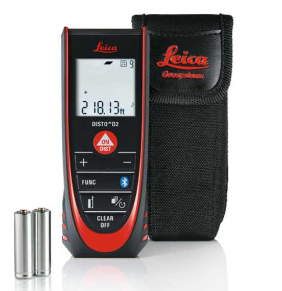 The Leica DISTO D2 is an easy to operate , high accuracy (± 1.5 mm / 1/16″) laser distance meter with a range of 100m (330′).