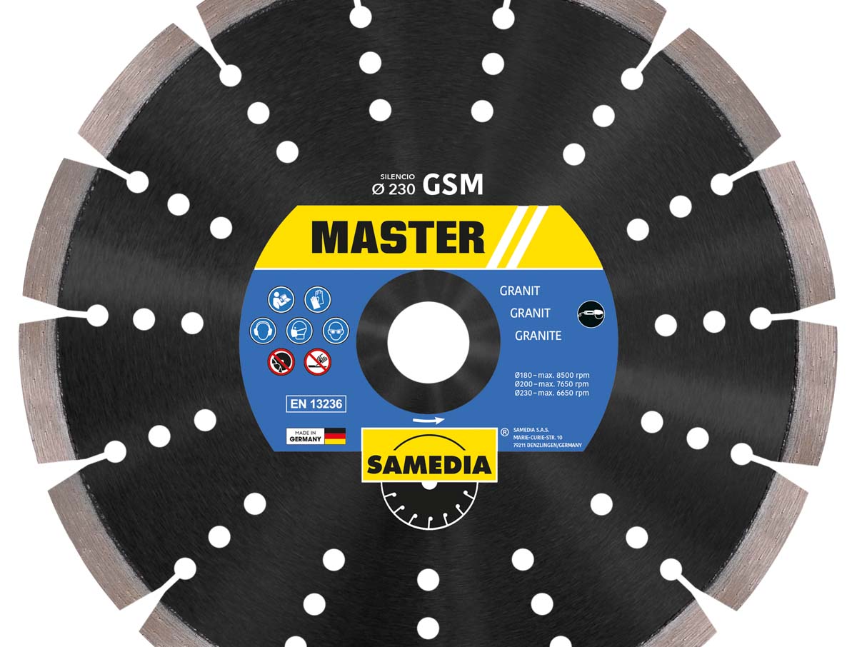 Safety information : the MASTER GTM diamond blade from SAMEDIA is compliant with the EN 13 236 european norm.