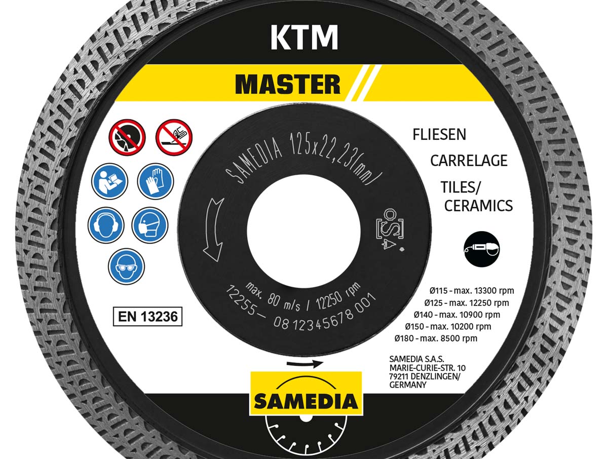 Safety information : the MASTER KTM diamond blade from SAMEDIA is compliant with the EN 13 236 european norm.